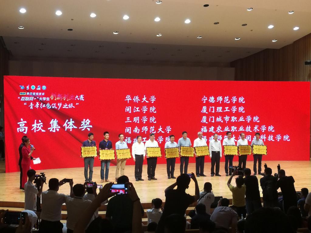 勇立時代潮頭敢闖會創,扎根中國大地書寫人生華章。8月27-28日,第四屆福建省“互聯網+”大學生創新創業大賽決賽在廈門大學舉行,福建省政協副主席、省教育廳副廳長薛衛民等領導出席頒獎典禮,我校黨委副書記鐘發亮應邀參加頒獎典禮,并為獲獎團隊頒獎。