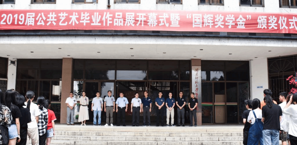 5月15日,藝術學院在學院展廳舉辦2019屆公共藝術畢業設計展暨“國輝獎學金”頒獎儀式。校黨委常委、副校長林致遠,漳州市科技局副局長何朱龍,福建國輝工貿集團總經理楊海通等出席活動,并為“國輝獎學金”第一批獲獎學生頒發證書及獎金。