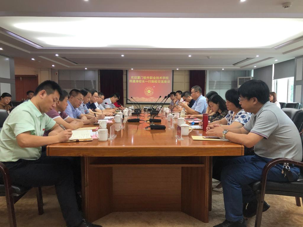 座談會上,鄭通濤介紹了廈門軟件職業技術學院的基本情況。他表示,為了應對新時期職業教育的新要求,學校迫切需要對教師進行培訓與提升。希望借助閩南師大教師教育的獨特優勢,在教師技能培訓、學歷提升和學生聯合培養等方面開展深入合作,實現互利共贏。校領導介紹了我校辦學發展情況,指出兩校地緣相近,合作潛力巨大,希望雙方發揮各自優勢,深化交流,拓展合作,共同為新時代新福建建設培養優秀的應用型人才。雙方就共同關心的師資培訓、海外教育、實習實訓、教育信息化建設等問題進行了深入交流。