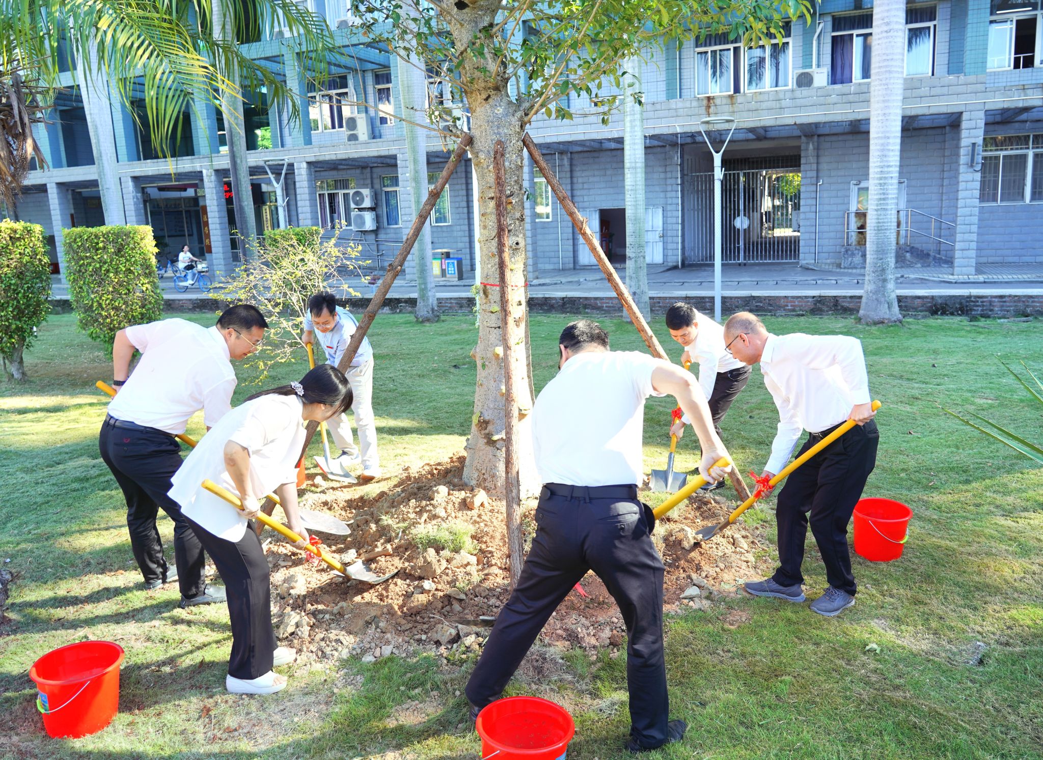 會后,參會成員前往鉆石廣場進行捐贈皮埃爾猴面包樹母樹栽植培土儀式。