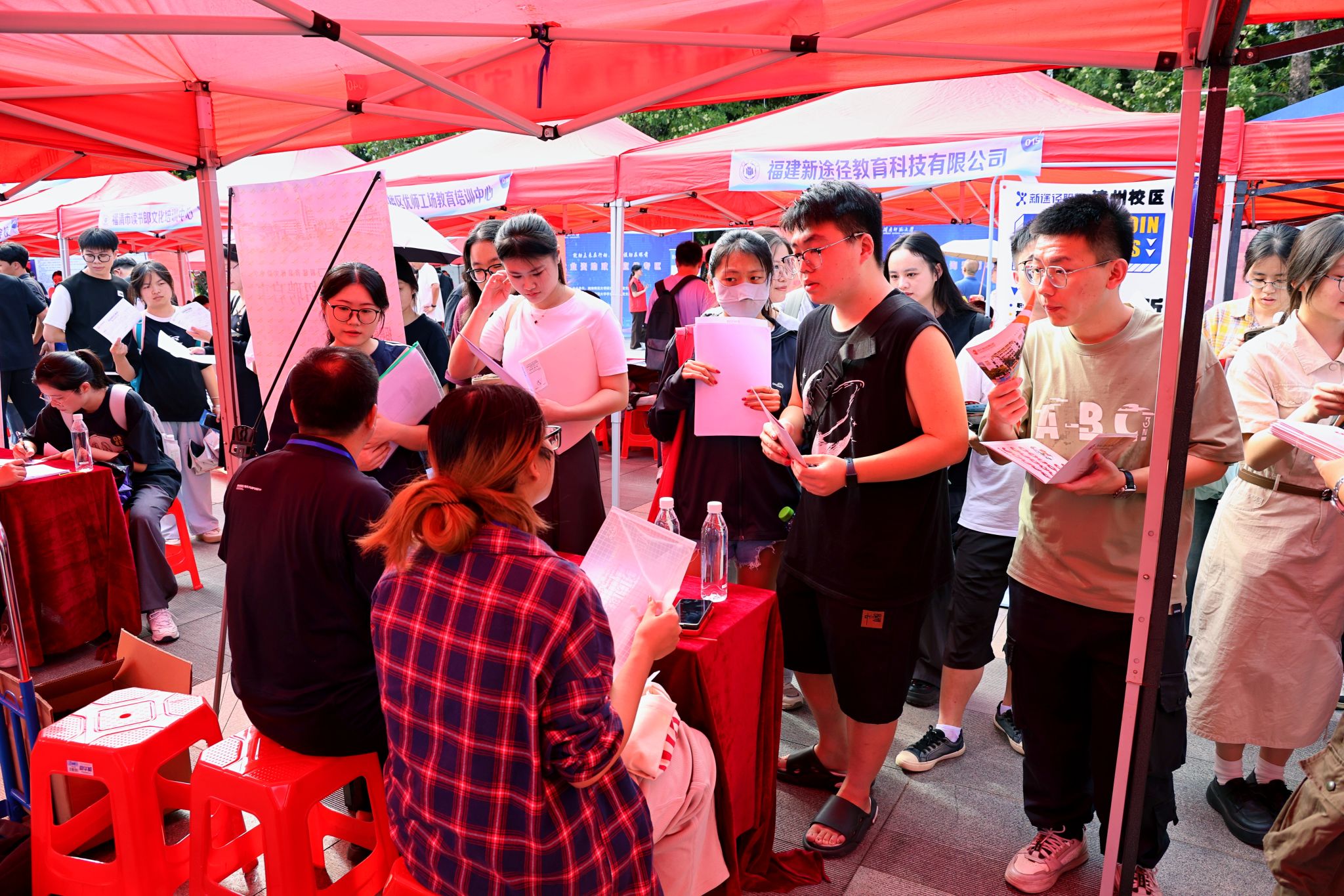 此次招聘會由閩南師范大學(xué)、漳州市委組織部、漳州市人力資源和社會保障局、漳州市教育局、中國海峽人才市場、漳州市工商聯(lián)(總商會)、福州市人力資源和社會保障局、漳州市婦女聯(lián)合會、共青團漳州市委員會、閩南日報社等單位共同舉辦,并在漳州新聞網(wǎng)微贊直播平臺和漳州新聞網(wǎng)視頻號直播平臺同步直播,為未能到現(xiàn)場的畢業(yè)生開通線上云求職渠道,在線觀看人員多達20萬余人次。據(jù)不完全統(tǒng)計,此次招聘會吸引學(xué)校應(yīng)屆畢業(yè)生3000余人,現(xiàn)場投遞簡歷5600余份,初步達成就業(yè)意向567人。上午,學(xué)校組織收聽收看了2025屆全國普通高校畢業(yè)生就業(yè)創(chuàng)業(yè)工作視頻會議。