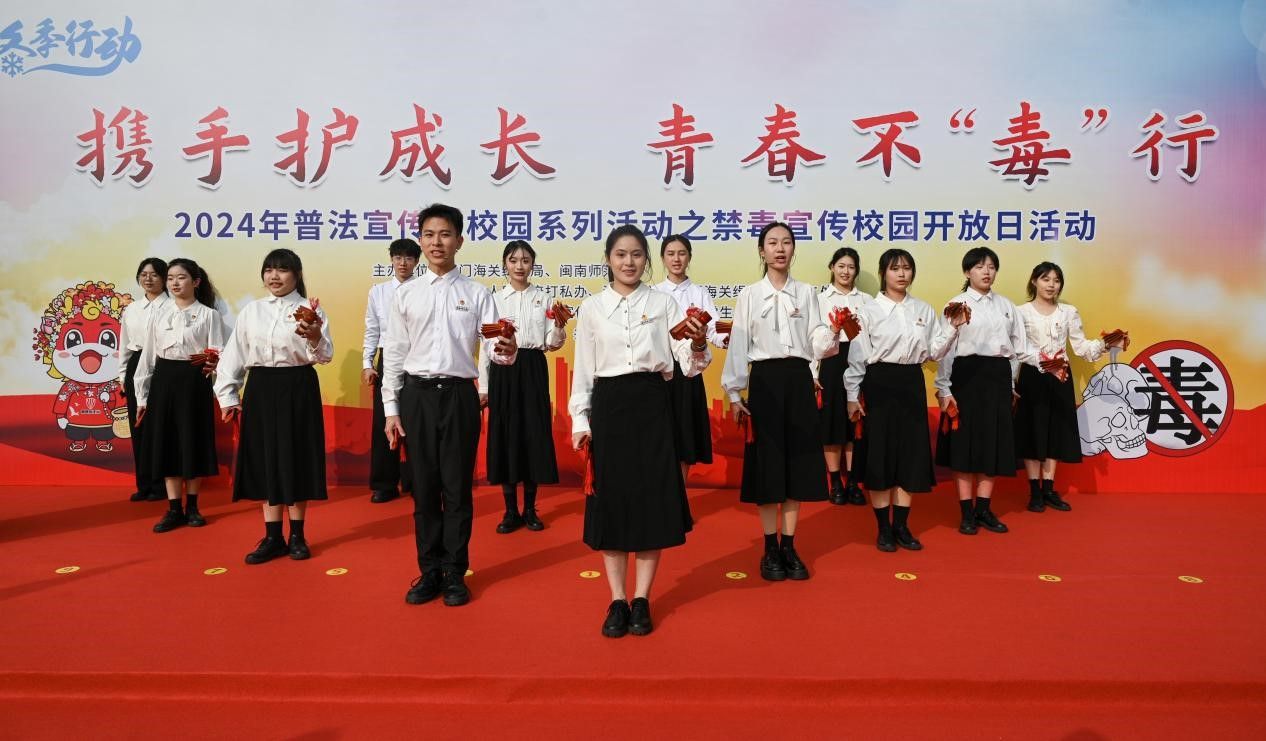 隨后,廈門海關緝私局黨組成員、副局長陳文亮為閩南師大“護苗”禁毒普法宣講志愿服務隊授旗,號召閩南師大青年志愿者們肩負起禁毒宣傳和服務的重要使命。