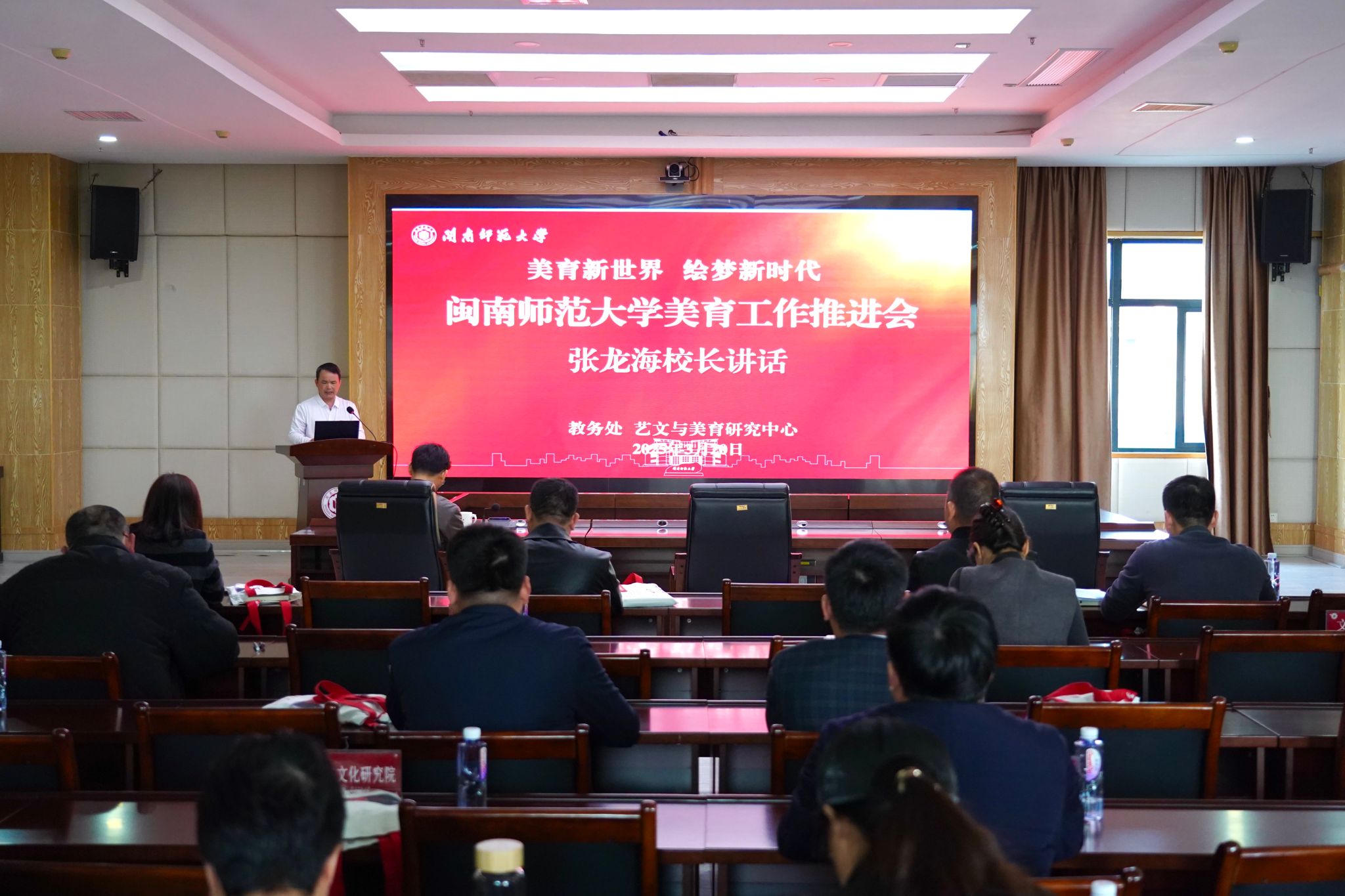 宣傳部、統戰部、教師工作部(人事處)、學生處、校團委負責人,各教學學院、閩南文化研究院院長,藝術類通識選修課程任課教師,以及教務處、藝文與美育研究中心相關人員參加會議。
