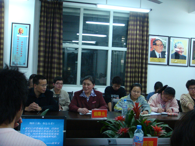 2008年3月20日晚,經(jīng)濟學系經(jīng)濟學社在篤行樓216舉行了以“物價上漲,你怎么看?”為主題的經(jīng)濟沙龍。本期沙龍榮幸地邀請到經(jīng)濟系侯曙光主任和陳麗麗副教授作為嘉賓,系輔導員鄧戰(zhàn)軍參加了活動,這是經(jīng)濟系開展的有專業(yè)特色、較大型的第二期經(jīng)濟沙龍。