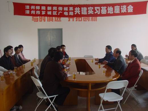 4日、5日上午,新聞傳播系主任李曉寧、書記洪照耀、副主任靳青萬前往薌城區廣電局、龍文廣電局,分別召開了兩場座談會。薌城區區委常委、宣傳部部長李明清,薌城區廣電局局長陳子銘,龍文區區委常委、宣傳部部長蔡乙鵡,龍文區廣電局局長林進福分別參加了會議。會上,李曉寧主任介紹了我院新聞傳播系的基本情況,主要包括專業設置、硬件資源和學生就業等方面的內容。實習基地的領導也表示,實習生的到來給他們注入了鮮活的力量,這本身就是一個資源共享,優勢互補,共同發展的過程。他們會盡全力為實習生提供最大的支持和實踐機會。在座談會的最后,兩個廣電局的負責人均與新聞傳播系簽訂了《實習基地協議書》,這標志著漳州師范學院新聞傳播系在薌城廣電局和龍文廣電局的實習基地的正式成立。