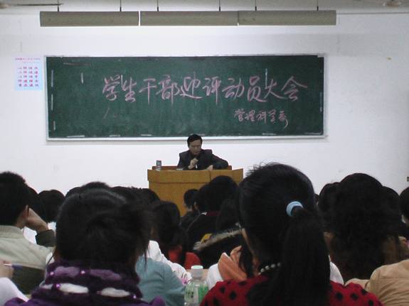 為調動廣大師生的積極性,為迎接咨詢性評估和明年的本科教學工作水平評估做好準備,管理系于25日下午在逸夫樓梯教二召開了全系學生干部、全體黨員迎評動員大會。系各年級輔導員出席了會議,管理系黨總支副書記朱志明到會并對迎評工作做了詳細說明和細致部署。