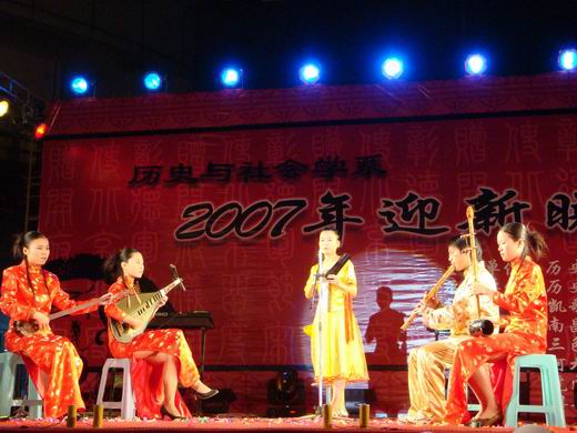 11月24日晚上7點(diǎn),歷史與社學(xué)系2007年迎新晚會(huì)在達(dá)理公寓學(xué)生活動(dòng)中心隆重上演,現(xiàn)場(chǎng)氣氛熱烈,掌聲雷動(dòng)。院長(zhǎng)王復(fù)興、院團(tuán)委書記朱百里、歷史系主任鄧文金、黨總支副書記白永坤與系部分教師到場(chǎng)觀看了晚會(huì)。