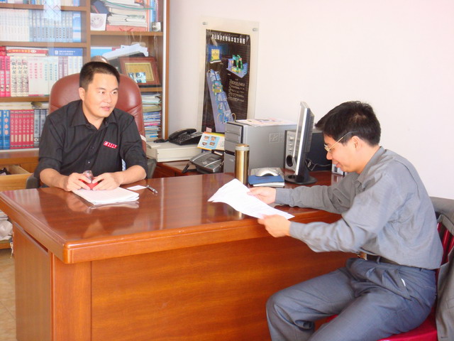 (系主任彭金發(fā)與東山縣谷文昌紀(jì)念館副館長交流共建問題)