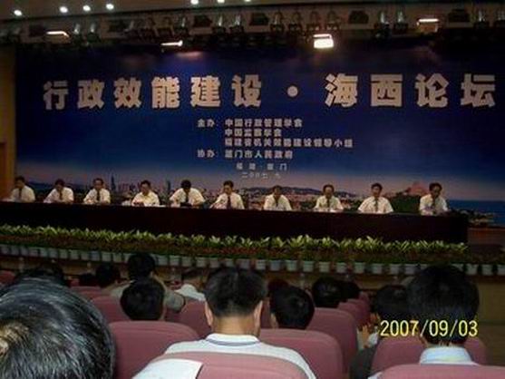9月3日,由中國行政管理學(xué)會(huì)、中國監(jiān)察學(xué)會(huì)和福建省機(jī)關(guān)效能建設(shè)領(lǐng)導(dǎo)小組聯(lián)合主辦的“行政效能建設(shè)·海西論壇”于廈門國家會(huì)計(jì)學(xué)院開幕。