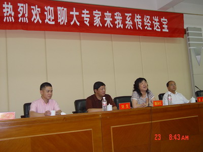 2007年7月23日上午,應我院黨委書記陳永紅的邀請,聊城大學副校長李喆、聊城大學外語學院院長劉生以及廣西桂林電子科技大學外語系教授梁正宇蒞臨我院外語系,傳授“迎評促建”的寶貴經驗。院黨委書記陳永紅出席了會議,外語系全體教職員工參加了會議。