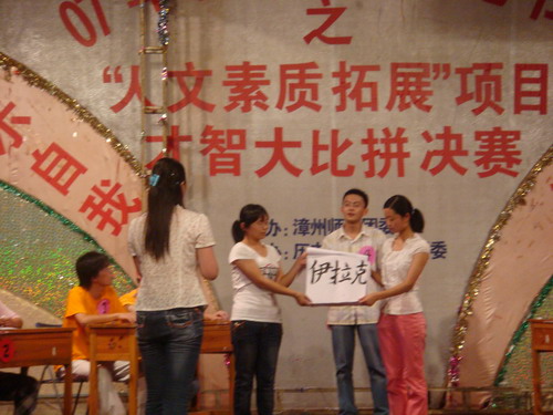 為了濃厚我院科研學(xué)術(shù)氛圍,迎接2008年國家教育部對我院的本科教學(xué)工作水平評估,提高學(xué)生各方面的素質(zhì),不斷充實科學(xué)文化知識,提升社會競爭能力,5月23日晚7點,歷史與社會學(xué)系2007年科技文化節(jié)之“人文素質(zhì)拓展”項目“才智大比拼”決賽在芙蓉四樓學(xué)生活動中心如期舉行。系黨總支白永坤副書記,世界史教研室主任劉晶輝教授及系團委相關(guān)老師出席了比賽現(xiàn)場。