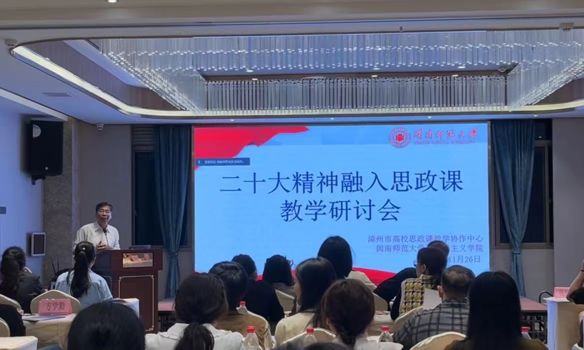 為深入學習貫徹黨的二十大精神,推動習近平新時代中國特色社會主義思想進教材、進課堂、進頭腦,近日,漳州市高校思政課教學協作中心、閩南師范大學馬克思主義學院在漳州市東山縣聯合舉辦“黨的二十大精神融入思政課教學”研討會。來自閩南師范大學馬克思主義學院、廈門大學嘉庚學院、漳州職業技術學院、漳州衛生職業技術學院、漳州城市職業技術學院等高校近60名思政課教師參加研討會。