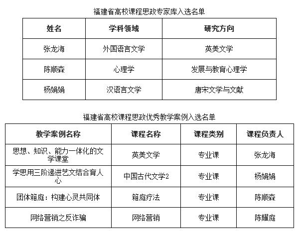 此外,在福建省高校課程思政教育聯盟公布的入選名單中,閩南師范大學還有3名專家入選福建省課程思政專家庫,4個案例入選福建省課程思政優秀教學案例。