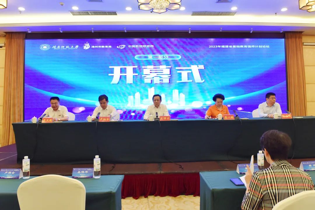 5月12日,2023年福建省基礎教育強師計劃論壇在漳州開幕。省委教育工委委員,省教育廳黨組成員、副廳長吳偉平,閩南師范大學黨委常委、副校長蔣一婷出席開幕式并致辭。