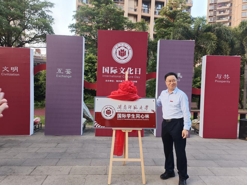 隨后,舉行國(guó)際學(xué)生同心林揭牌儀式。閩南師大黨委常委、副校長(zhǎng)林致遠(yuǎn)在致辭中指出,2023年是“一帶一路”倡議提出十周年,閩南師范大學(xué)“國(guó)際學(xué)生同心林”的揭牌,不僅是構(gòu)建人與自然心靈契合的儀式,更是共筑所有閩南師范大學(xué)國(guó)際學(xué)生精神家園、共結(jié)國(guó)際友誼之林的期許。