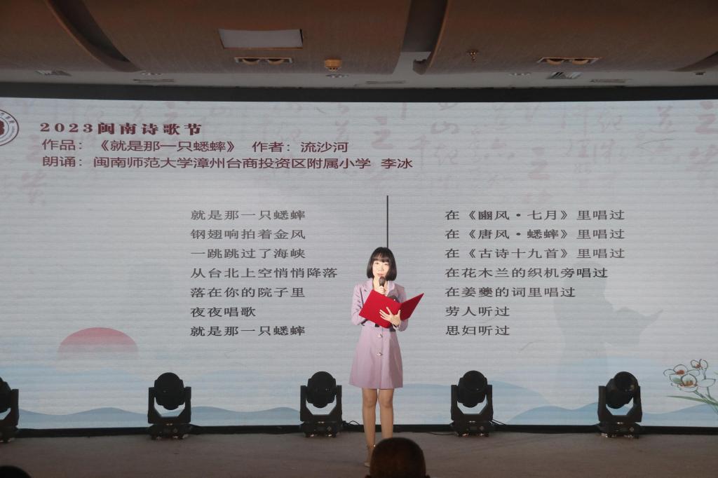 為深入學習貫徹習近平新時代中國特色社會主義思想,加強兩岸語言文化教育的交流與合作,推進兩岸語言文化教育的傳承與發展,增強中華民族文化認同感,近日,以“同聲同文,詩必有教”為主題的2023閩南詩歌節開幕式暨詩歌朗誦會在閩南師范大學逸夫圖書館五樓報告廳舉行。