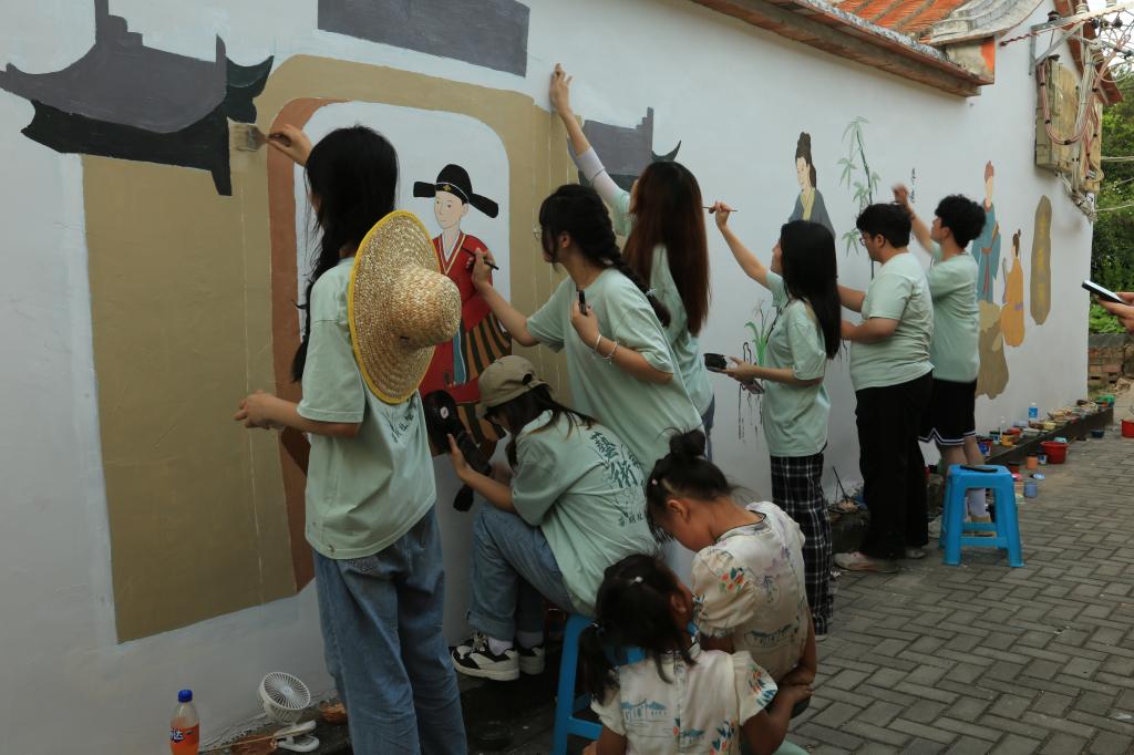 “彩繪盤陀”實踐小分隊則結合當地人居環境工程改造,以打造閩臺特色小鎮為主題,將“閩臺文化”“茶文化”等元素融入墻繪中,將中華優秀傳統文化創造性轉化、創新性發展,“潤物無聲”中傳承中華優秀傳統文化。這是一次藝術下鄉,也是文化下鄉,進一步豐富了鄉村的文化生活,美化了鄉村環境。