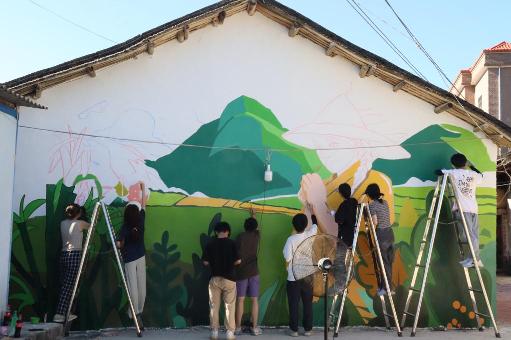 隊員們在墻繪過程中,克服種種困難,戰高溫、斗酷暑,早出晚歸,一同迎來晨曦的第一縷陽光,一起見證夜晚的星空閃爍。烈日與星辰一同見證他們的成長。隊員們發揮自己藝術特長,以墻為布、以筆傳情,結合當地文化底蘊、歷史背景,構圖、起形、調色、上色……不斷發揮創造力與想象力,反復打磨每一面墻繪、認真勾勒每一個細節。隊員們在實踐中既錘煉了吃苦耐勞的優良品質,也在實際行動中彰顯新時代大學生的責任擔當。