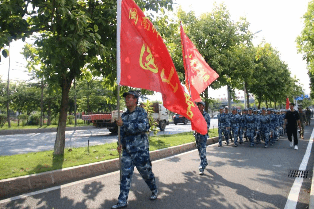 在圓山校區(qū),隨著集合哨音的響起,同學(xué)們聞令而動,斗志昂揚迅速完成集結(jié)。校黨委常委、副校長林致遠發(fā)出指令,一場5公里的越野拉練正式開啟。在隊列的最前端,“圓山營”和各連隊的旗幟迎風(fēng)飄揚,藍色迷彩隊伍如長龍般沿著圓山大道一路前行。同學(xué)們用青春丈量腳步,用信仰砥礪前行。