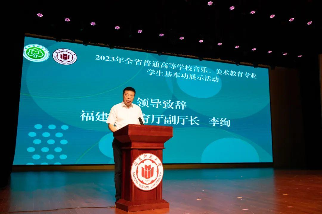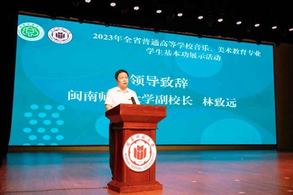 9月25日,由福建省教育廳主辦、閩南師范大學承辦的2023年全省普通高等學校音樂、美術教育專業學生基本功展示活動開幕式在閩南文化藝術中心多功能廳舉行。省教育廳副廳長李絢,副校長林致遠出席開幕式。