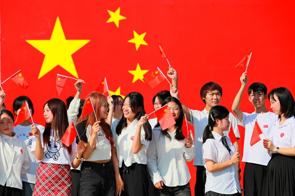 閩南師大學子與國旗同框(王艾嘉 攝)
