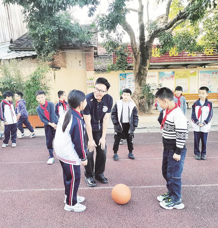 翁國亮永遠也忘不了孩子們在體育課上歡樂的笑聲和渴盼的眼神。“真正感受到籃球樂趣的眼神,是騙不了人的。”上完課后,二年級學生小林同學在翁國亮身邊轉悠了好幾圈,“老師,你下周還來不來教我們打籃球?”小林問著,“來!下周老師看你有沒有進步哦!”聽到翁國亮肯定的回答,小林開心地跑開,在操場上留下一串笑聲。