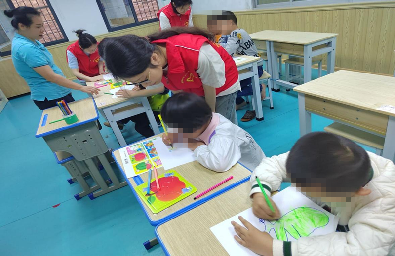 活動中,志愿者們與孤獨癥兒童進行了親密互動。通過自我介紹活躍氣氛,增進志愿者與小朋友之間的聯系,建立初步信任關系;志愿者帶領小朋友們做了拼圖、繪畫、紅綠燈等豐富多彩的游戲,既鼓勵了小朋友們的自主動手能力,又充分培養了他們的專注力與創造能力。