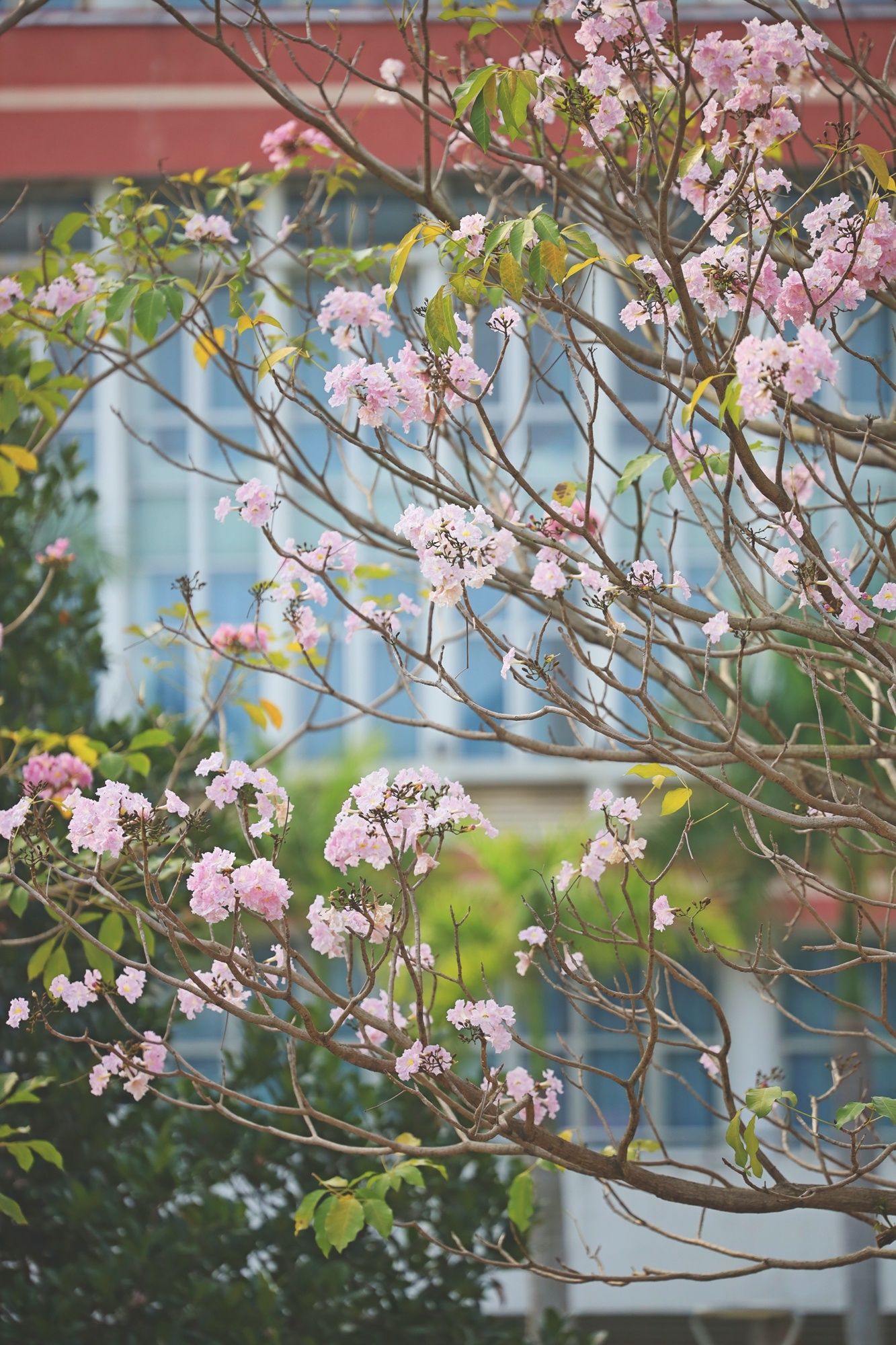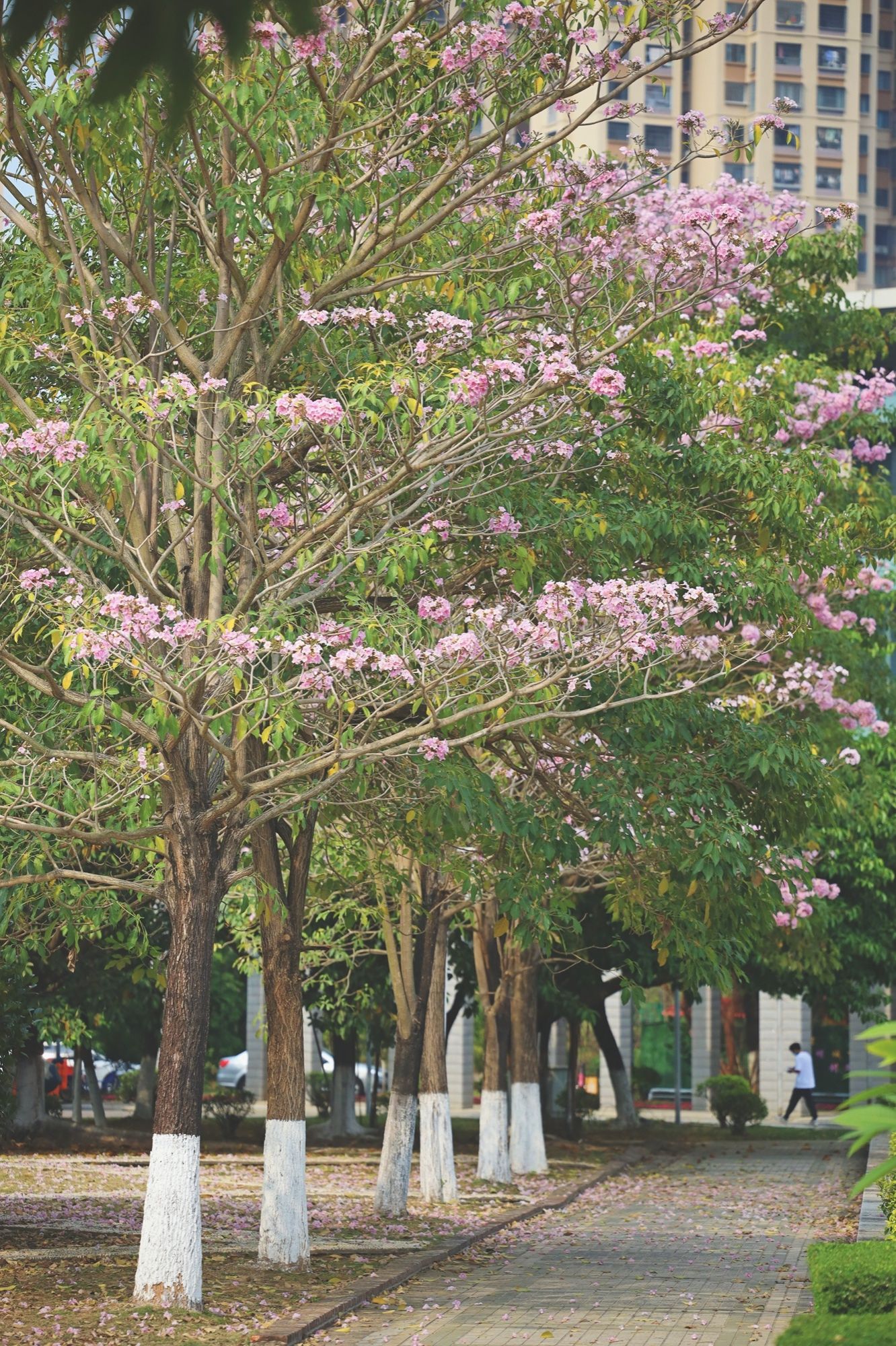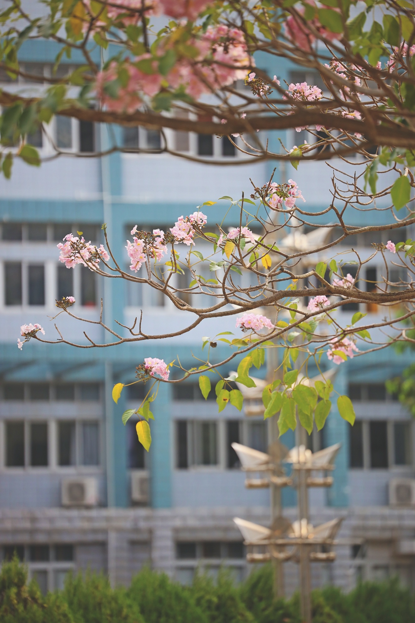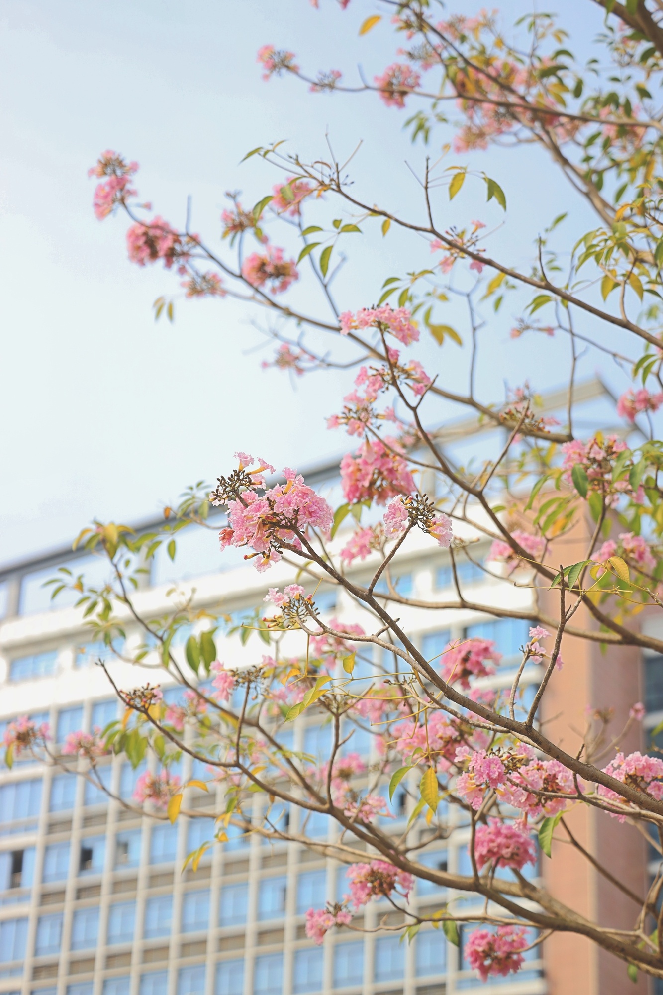 鉆石廣場上,粉色風(fēng)鈴木在悄悄向上生長,尋找春天的太陽