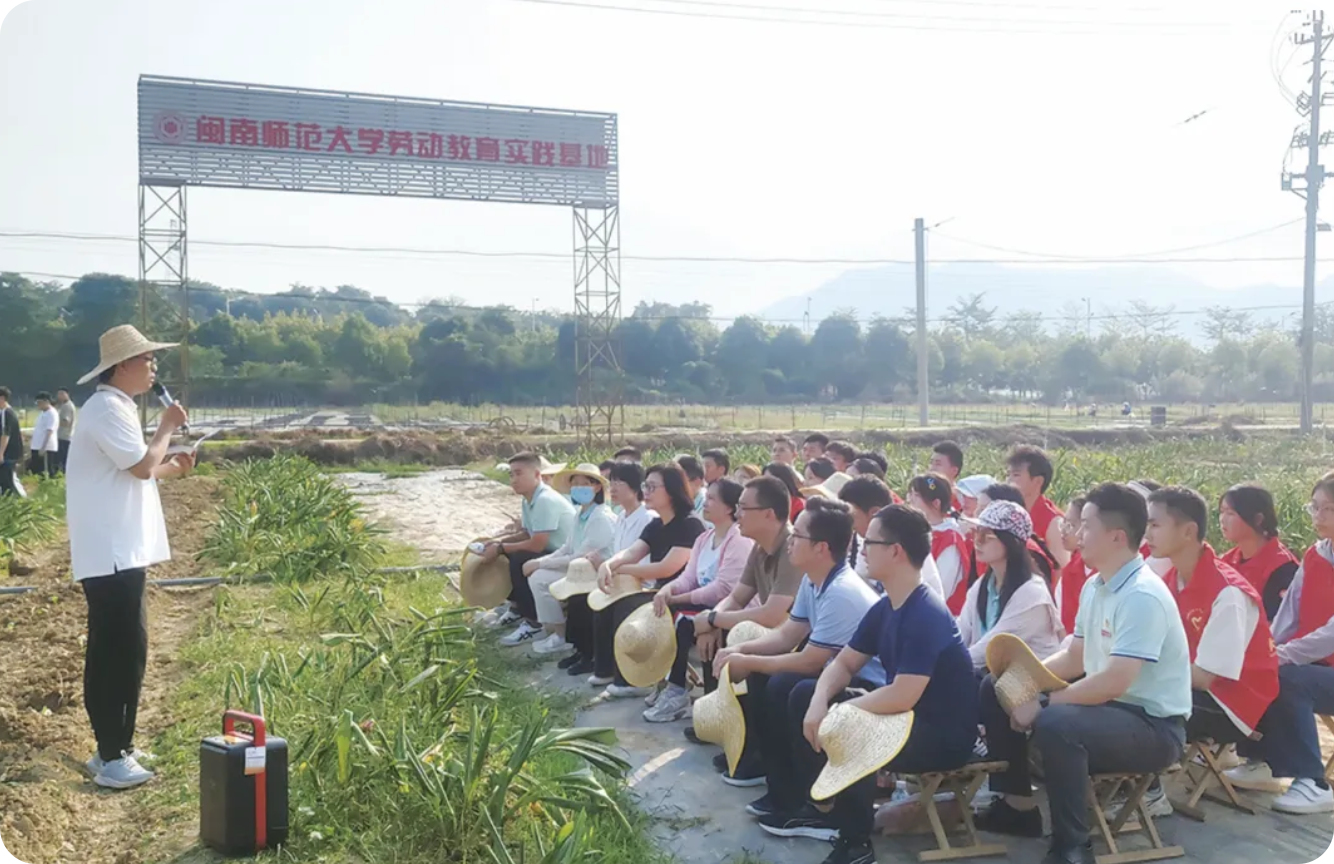 九龍江畔的閩南師范大學勞動教育實踐基地,以“勞動之姿”帶動“青年之志”的勞動教育正火熱開展。青年黨員干部和新生入黨申請人“青藍結對”,走進田間地頭,感受勞動實踐的辛勞與收獲。青年黨員干部結合勞動教育,當好“紅色信仰播種者”,通過“田間微黨課”向新生講解入黨初心使命,傳遞紅色精神信仰。這堂“流汗水、蹚泥水、喝墨水”的勞動教育課,正是閩南師范大學構建“黨建+勞動養成”育人模式的縮影。