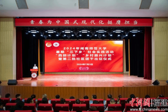 中新網福建新聞7月4日電(柯馨茹 董征 陳博林 韋紅豆)7月3日,2024年閩南師范大學暑期“三下鄉”社會實踐活動、“西部計劃”“鄉村振興計劃”暨第二批社區團干出征儀式在閩南文化藝術中心多功能廳舉行。