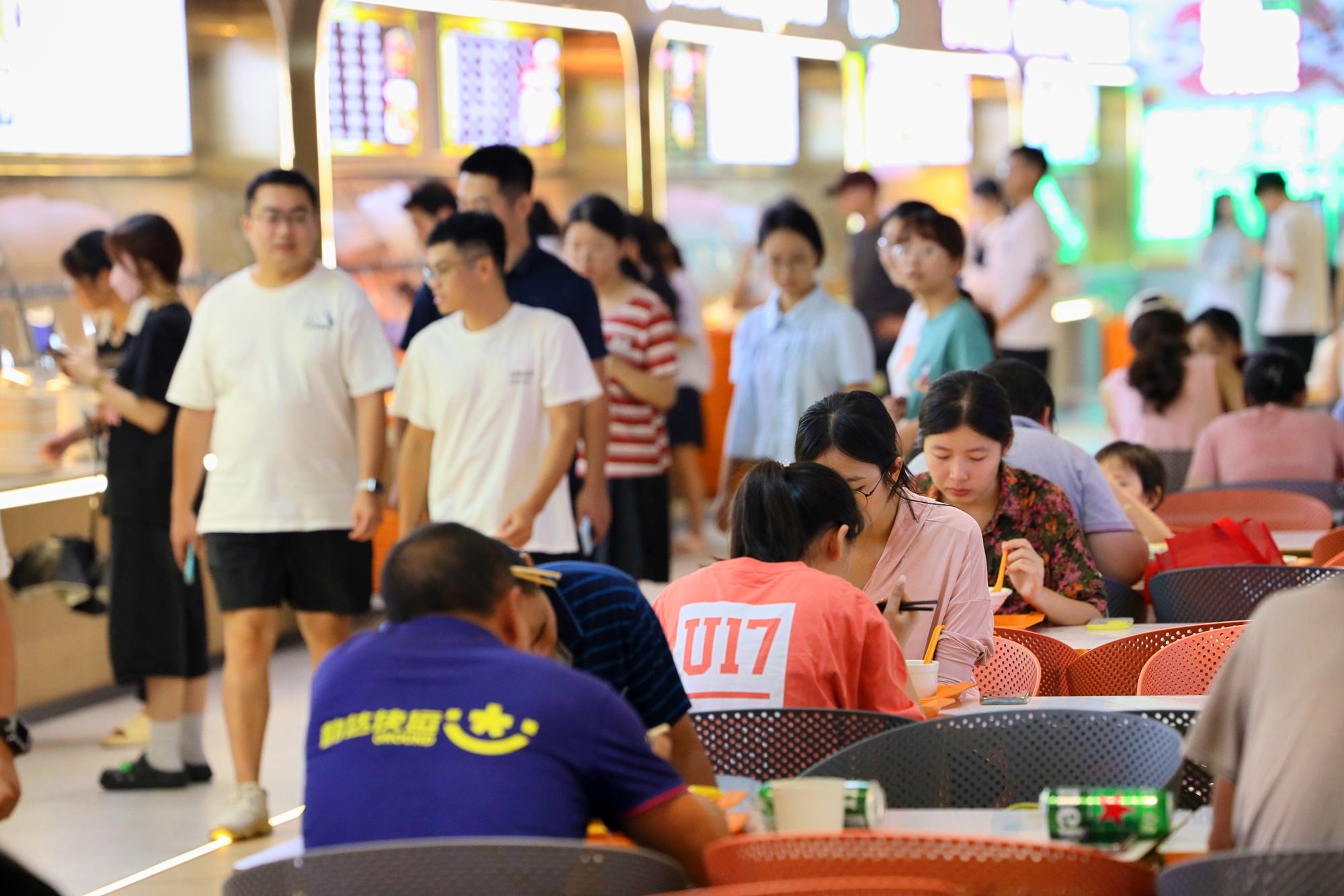 師生返校時學校各項后勤服務工作均已到位,師生在食堂享用美食。