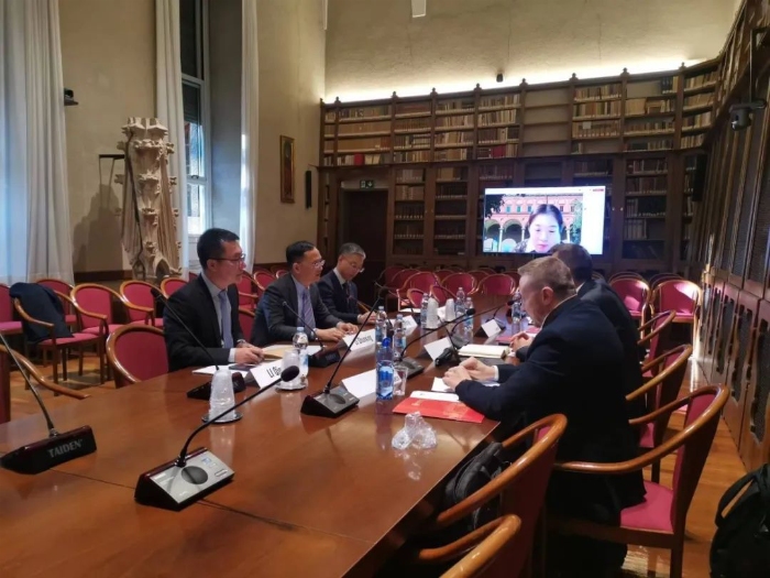 雙方回顧了兩校在聯合辦學、學生互換、教師互訪等方面的交流合作歷程,期待雙方同向發力,深化已有合作,積極探索合作新領域,共同為兩校師生搭建交往交流大平臺,為中意兩國高等教育合作共贏發展貢獻力量。