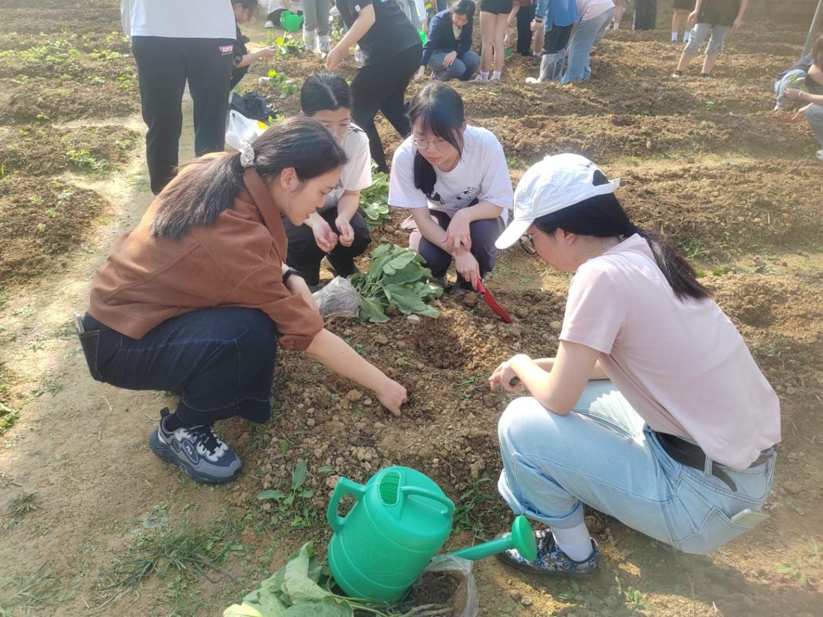 同學們分組領取菜苗后,在老師指導下依次完成挖穴、扶苗、培土、澆水等工序。舒展著生命律動的稚嫩菜苗間,萌發著年輕學子對自然的探索熱情。“蔬香門地隊”的小王同學捧著剛栽下的幼苗感嘆:“這可是我第一次種菜!看著它挺立在田壟上,突然懂了‘春種一粒粟’的深意。”這不僅是蔬菜的播種,更是丈量生命成長規律的具象課堂,是勞動創造價值的具體實踐。
