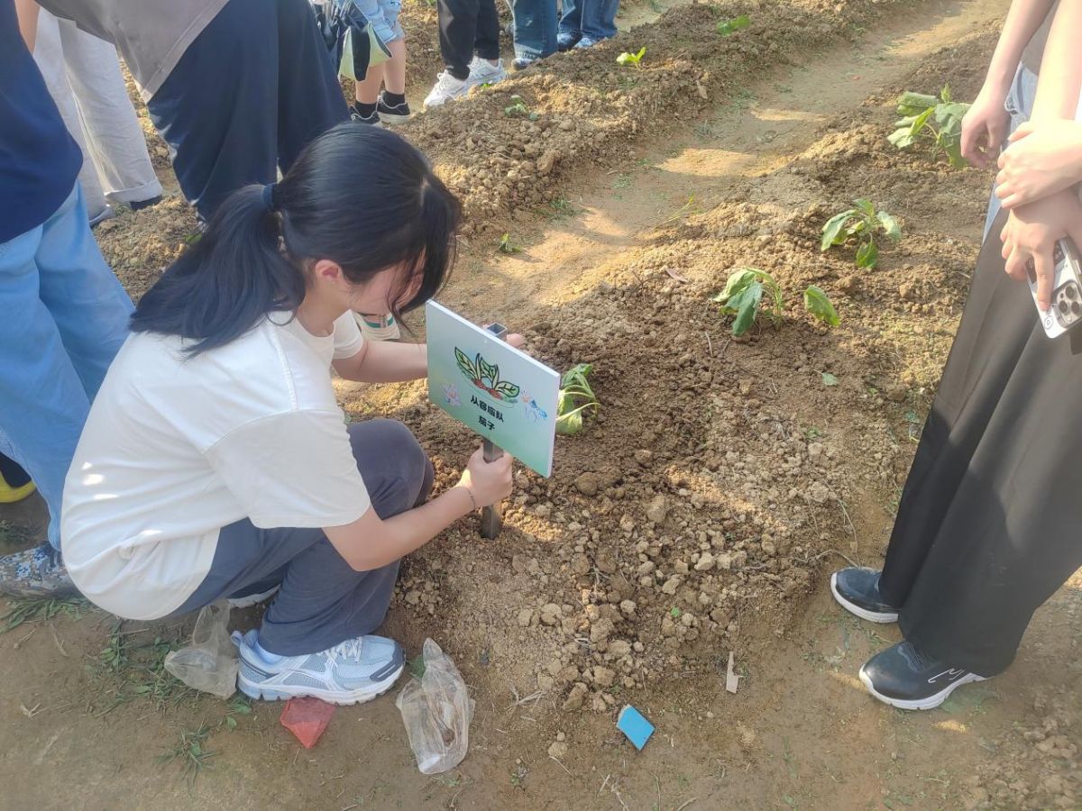 種植活動尾聲,各組隊長將隊名牌插入責任田壟。“種什么都活隊”隊長小戴半跪著撫平名牌周遭的土壤,輕聲說:“但愿這些菜苗能如隊名所言,在這片土地上扎根生長。”田壟間的隊牌不僅銘刻著勞動承諾,更將見證茄果與藤蔓的共生軌跡,記錄下青春熱血與土地脈動交織的成長詩篇。