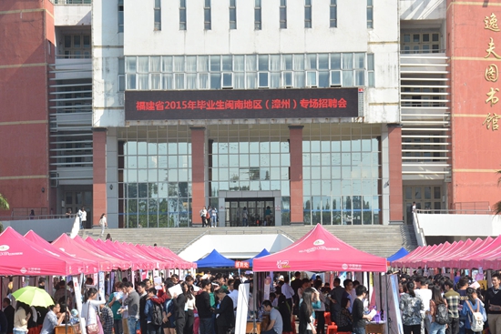 11月15日上午,由省人力資源和社會(huì)保障廳與閩南師范大學(xué)共同舉辦的2015年大中專畢業(yè)生閩南地區(qū)(漳州)專場(chǎng)招聘會(huì),在閩南師大弦歌廣場(chǎng)舉行。來自省內(nèi)高校的5000多名畢業(yè)生參加招聘會(huì)。