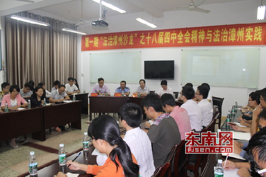 據悉,本次沙龍旨在通過座談會的形式讓學生們更好地踐行十八屆四中全會精神與法治漳州實踐,更好地領會全會審議通過的《中共中央關于全面推進依法治國若干重大問題的決定》、《全體會議公報》精神,貫徹落實全會聚焦法治建設、推動司法改革的精髓。