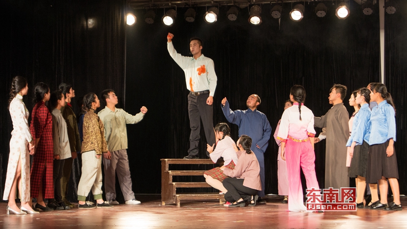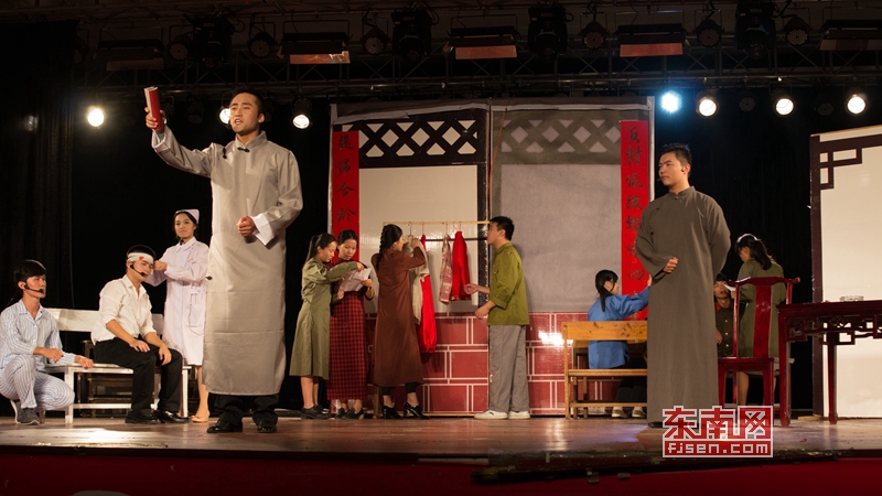 東南網漳州11月10日訊(見習記者 郭鈺婷)“反對低級趣味的文藝,提出合于現代的戲劇。”恰逢薌潮劇社成立80周年之際,9日晚上,一出名為《薌潮》的大型話劇在閩南師大龍文館精彩上演,薌濤劇社總顧問邱煜昆、團委副書記鄭炎山應邀出席本次活動。