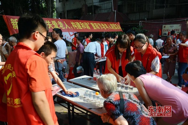東南網漳州10月3日訊(通訊員 鄭文典 見習記者 郭鈺婷)近日,巷口街道新浦社區聯合閩南師范大學計算機學院、新華都超市開展“關愛老人,構建和諧”慶重陽游園活動,社區的老年人在近百名志愿者的陪伴與引導下,參與吹氣球、夾珠子、扔沙袋、套圈、釣魚、猜謎等闖關游戲,贏取獎品,活動現場還為老人提供健康義診。志愿者燦爛的笑臉,老人們欣慰的笑容,在夕陽映照下,構成了一幅“最美不過夕陽紅”的美好畫卷。