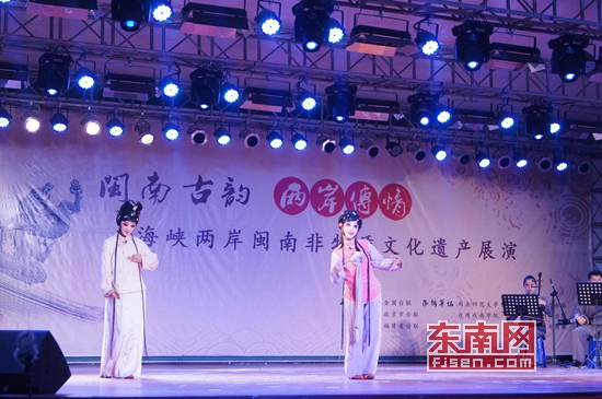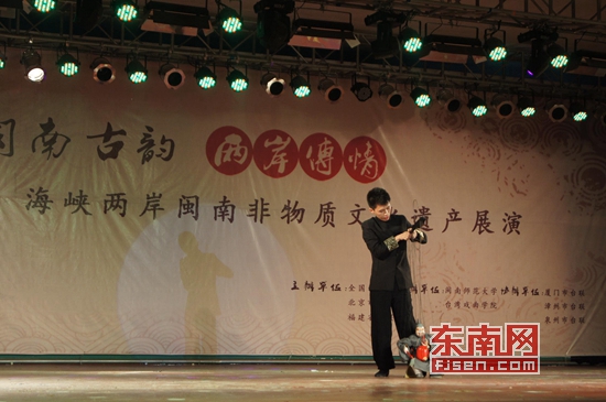 此次在閩南師大的演出,是閩南古韻·兩岸傳情”的海峽兩岸閩南非物質(zhì)文化遺產(chǎn)展演進(jìn)京前的一次匯演,所有展演節(jié)目還將于9月28至30日在國家大劇院正式演出。