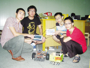 能在全國大賽上獲獎,離不開團隊成員的密切配合。四個哥們先是一同系統(tǒng)地學(xué)習(xí)無線通訊方面的知識,而后分工設(shè)計:有人負責(zé)做系統(tǒng),有人負責(zé)對系統(tǒng)進行完善,有人負責(zé)網(wǎng)絡(luò)連接,有人負責(zé)智能車方面的設(shè)計制作,而指導(dǎo)老師進行統(tǒng)籌協(xié)調(diào)。