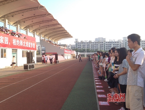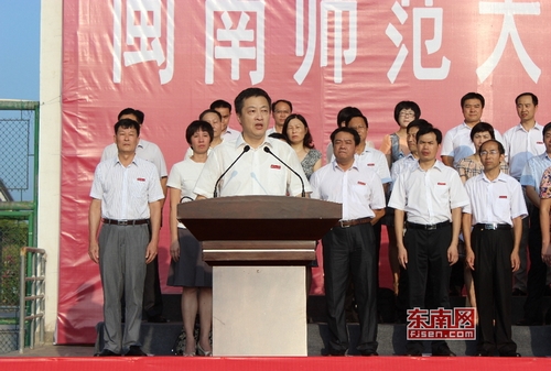 東南網9月10日訊(本網記者 王亞男)9月9日上午7點,在晨起的陽光下,雄壯的國歌奏響,拉開了閩南師大開學典禮的序幕,也拉開了2014級新生大學生涯的序幕。
