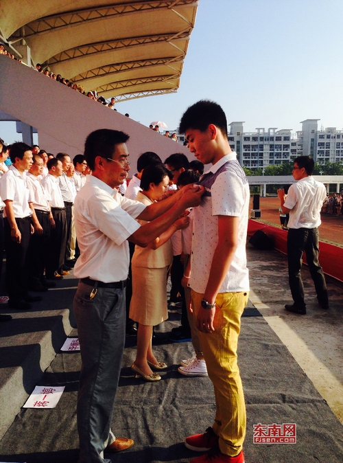 林曉峰書記、吳彬鏹副書記等校領導,以及閩南師大校友,漳州市政協副主席李惜真、原漳州師范學院院長康錦堂等為新生代表佩戴校徽,這也標志著5000多名的新生正式成為閩南師大中的一員,將在這里開啟新的人生篇章。
