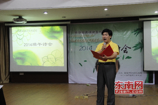 東南網5月30日訊(見習記者 黃文星)傳承文化,延續經典,2014年中華經典誦讀系列活動之端午詩會于29日晚七時三十分在閩南師范大學成功舉辦。詩會以吟詩誦詞的傳統形式緬懷屈原,紀念端午。