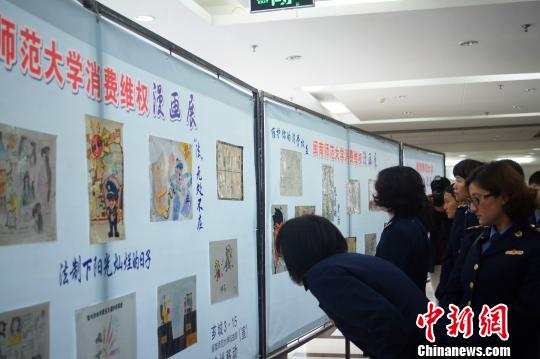 漳州工商系統工作人員正在參觀閩南師范大學消費維權漫畫展。 王欣 攝