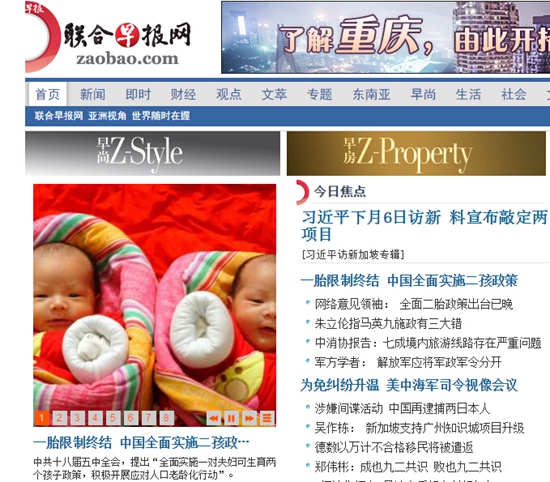 新加坡聯合早報中文網在頭圖和首頁要聞區報道了中國全面放開二孩一事。聯合早報認為去年中國多地放寬一胎化政策,但實施一周年并未出現生育率激增的情況,突顯中國城市和許多發達國家一樣面臨少子化的發展挑戰。有分析認為,即使全面放寬生育政策,中國城市夫婦因為養育負擔沉重不敢生育,因此響應政策的申請未必有“井噴式”增長。