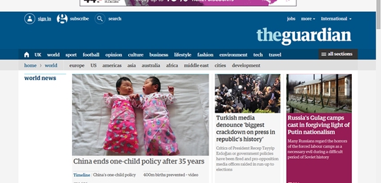 英國《衛報》的頭條題為《中國在35年后取消一孩政策》