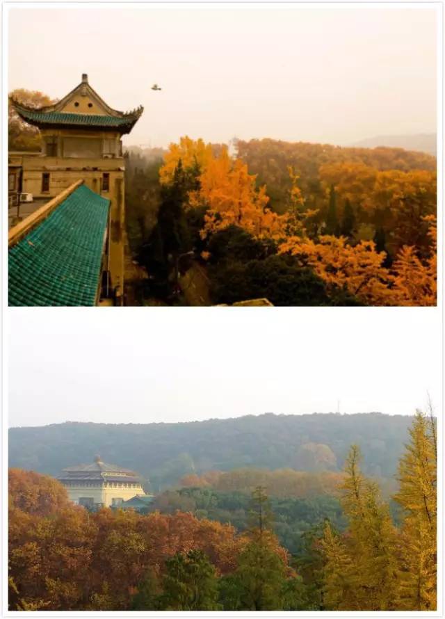 黃葉、松柏、古建筑.....這些元素讓南大的秋日畫卷色澤明媚而豐富。