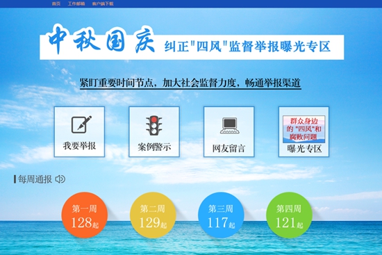 以最近剛結束的中秋國慶節點“每周通報”為例,把違反中央八項規定精神的行為列為重點,把違紀者的姓名、單位、職務等信息公之于眾,對那些心存僥幸、依然故我、頂風違紀的,發現一起查處一起,越往后執紀越嚴。