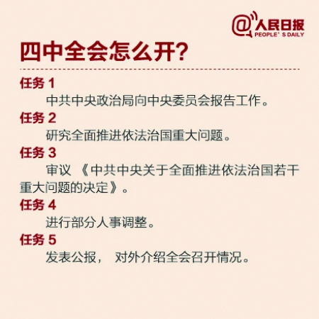 20日,十八屆四中全會將在北京召開。現在問題來了:“四中全會”討論什么?依法治國首次成全會主題,傳遞什么政治信號?……能從全會中看出門道是大本事!9張圖,教你看懂四中全會,一起學習!