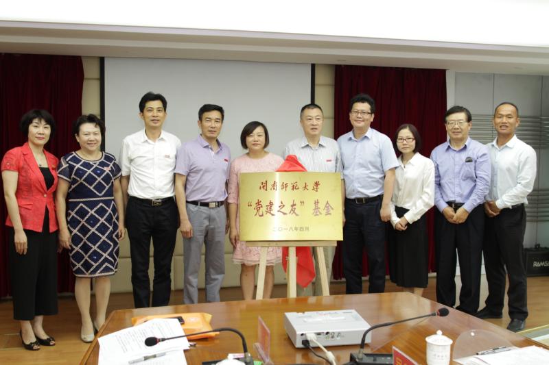 會上,賴雪鳳董事長向學校捐贈100萬元“黨建之友”基金;校黨委書記吳彬鏹代表學校向賴雪鳳董事長頒發捐贈證書,并共同為閩南師范大學“黨建之友”基金揭牌。